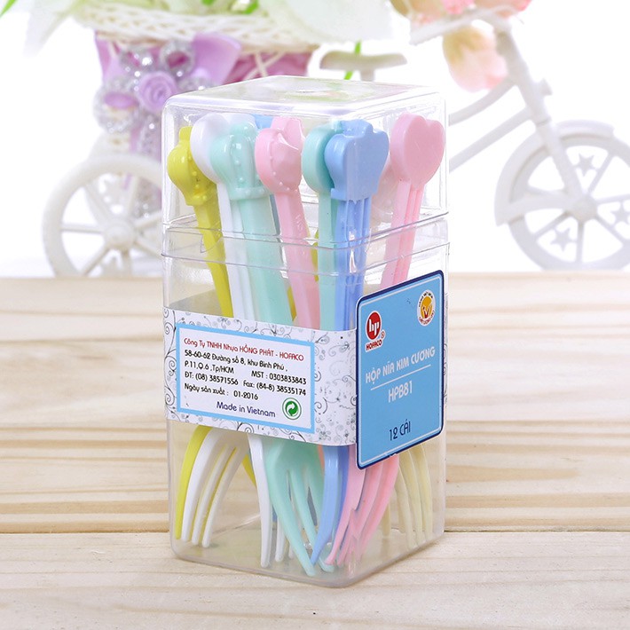 Giới thiệu Hộp 12 dĩa/nĩa ăn kim cương trái cây, bánh sinh nhật HPB81