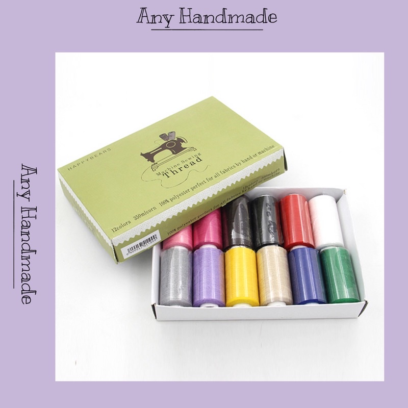 Hộp gồm 12 ống chỉ các màu. Hộp đựng cứng cáp.Mỗi ống chỉ dài 350m. Phù hợp cho cả may tay và may máy số lượng ít.