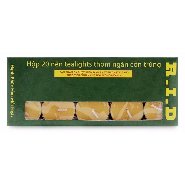 Nhà cửa & Đời sống > Trang trí nhà cửa > Nến & đồ đựng nến || Hộp 20 nến tealight thơm ngăn côn trùng NQM FtraMart (Vàng)Còn hàng