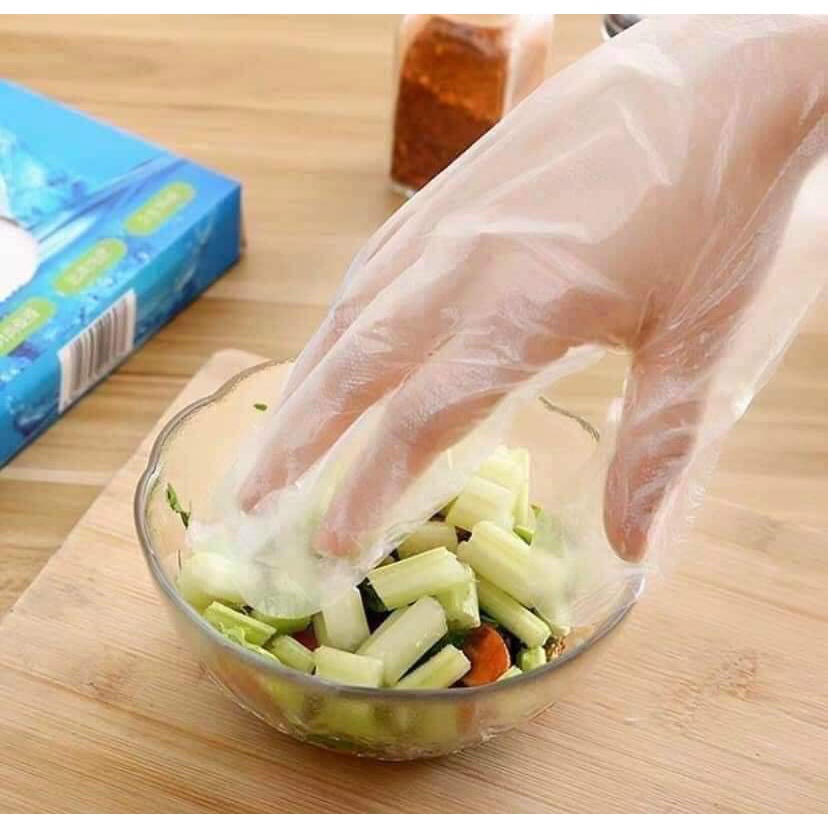 Hộp 200 găng tay nilon sử dụng 1 lần sạch sẽ, an toàn- Đối với các công việc nhà bếp thì găng tay nilon được các bà nội trợ lựa chọn sử dụng khi chế biến thức ăn bởi loại găng tay này không bị cộm, không vướng.