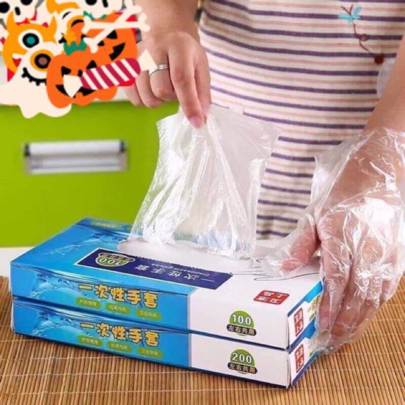 Hộp 200 Chiếc Găng Bao Tay Nilon Dùng 1 Lần Tiện Lợi Disposable Gloves 200pic