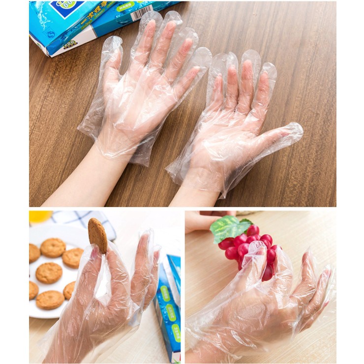 Hộp 200 găng tay nilon sử dụng 1 lần sạch sẽ, an toàn- Đối với các công việc nhà bếp thì găng tay nilon được các bà nội trợ lựa chọn sử dụng khi chế biến thức ăn bởi loại găng tay này mỏng, không bị cộm, không vướng.