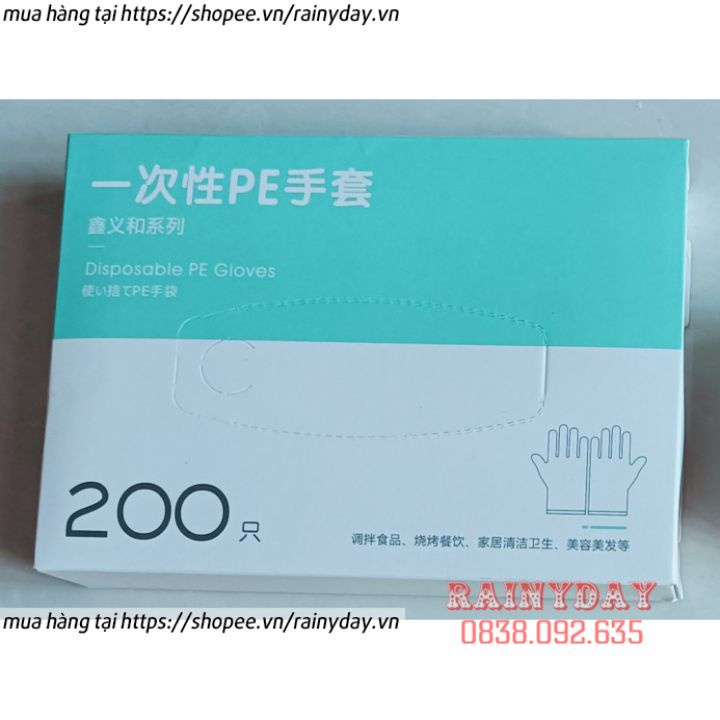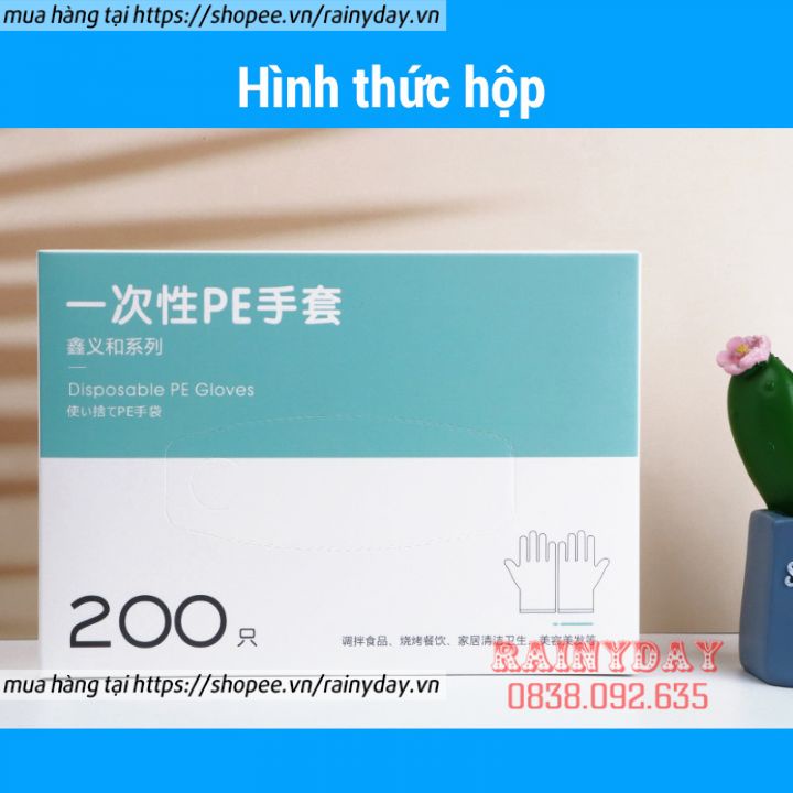 Hộp 200 găng tay nilon, bao tay nilong rửa bát chén làm bếp đa năng dùng 1 lần dẻo siêu dai