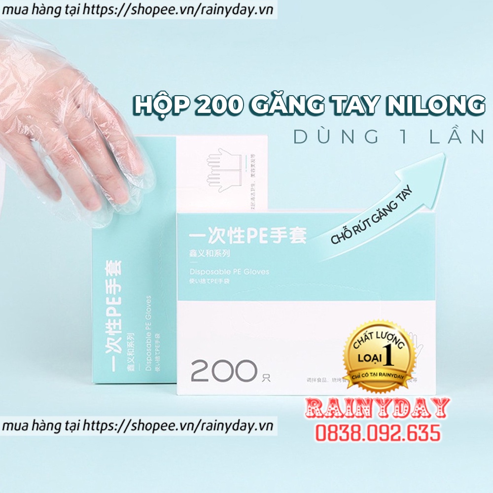 Nhà cửa & Đời sống > Dụng cụ nhà bếp > Tạp dề & gắng tay nấu nướng || Hộp 200 găng tay nilon, bao tay nilong rửa bát chén làm bếp đa năng dùng 1 lần dẻo siêu daiCòn hàng