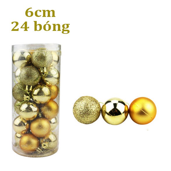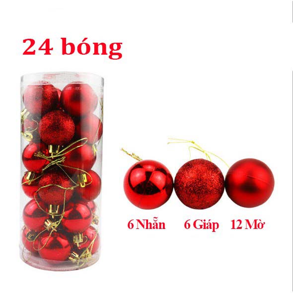 Hộp 24 quả châu 8/6/4/3cm loại đẹp trang trí giáng sinh - set 24 quả bóng chống vỡ trang trí cây thông noel