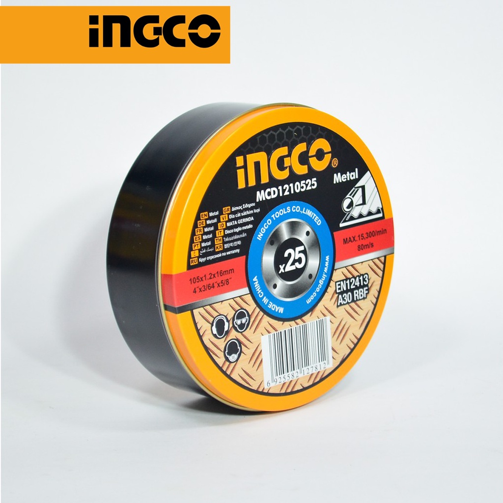 Giới thiệu Hộp 25 dĩa cắt sắt - kim loại cho máy cắt, máy mài INGCO MCD1210525