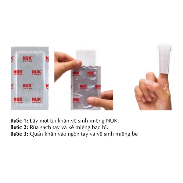 Khăn vệ sinh miệng NUK cho trẻ nên được sử dụng ngay từ những ngày đầu tiên chào đời nhằm loại bỏ vi khuẩn bám đọng trong miệng, bảo vệ đường tiêu hóa non nớt.Chất liệu vải không dệt đặc biệt mềm, không bay sợi, không dính lại trong miệng bé.
