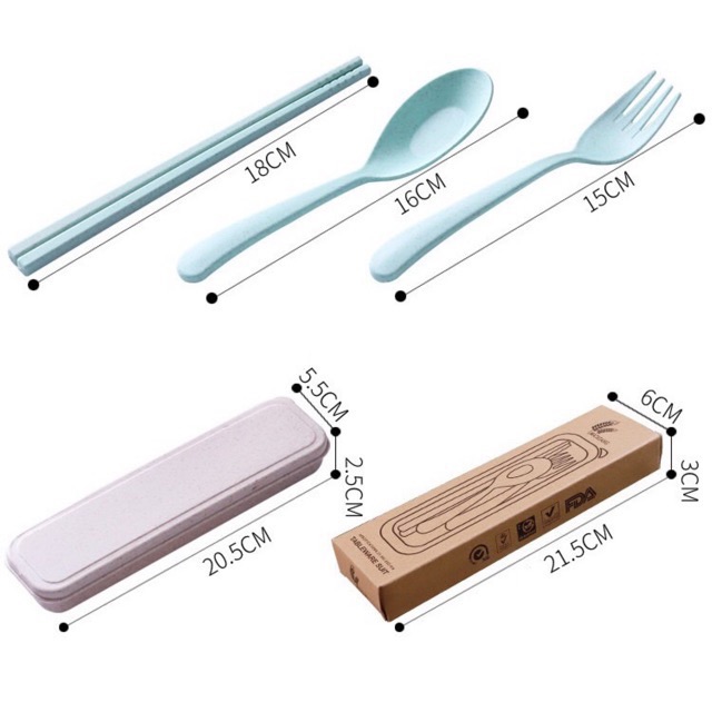 Hộp 3 Món Đũa , Thìa , Dĩa Bằng Nhựa Sạch Lúa Mạch Cao Cấp