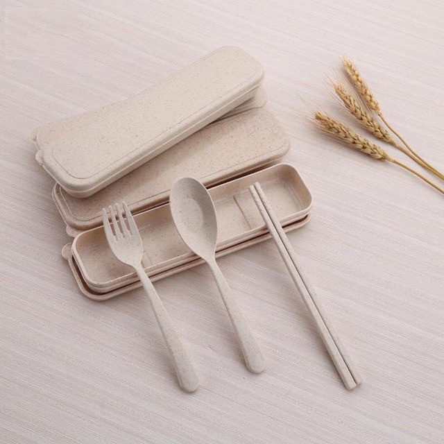 Nhà cửa & Đời sống > Bộ đồ bàn ăn > Bộ dao kéo || Hộp 3 Món Đũa , Thìa , Dĩa Bằng Nhựa Sạch Lúa Mạch Cao CấpCòn hàng