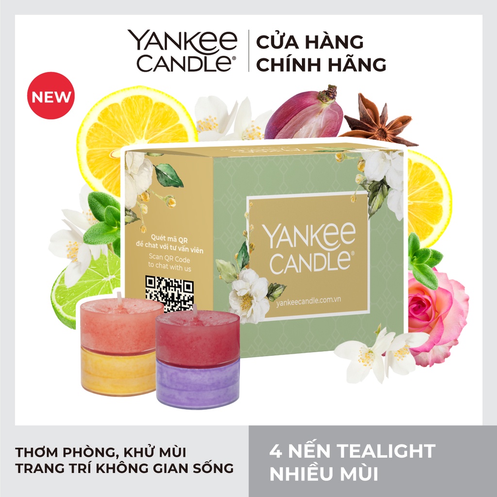 Nhà cửa & Đời sống > Trang trí nhà cửa > Nến & đồ đựng nến || [Mã LIFEMALL991 giảm 10% đơn 99K] Hộp 4 Nến Tealight Yankee Candle nhiều mùiCòn hàng