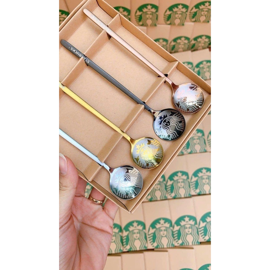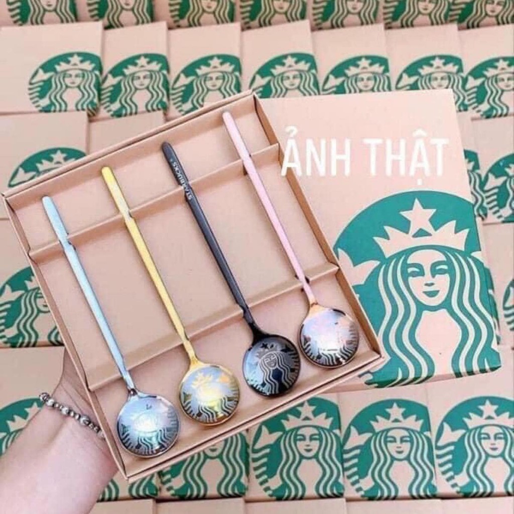 HỘP 4 THÌA INOX STARBUCKS 4 MÀU SANG CHẢNH
