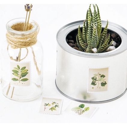 Hộp 45 miếng dán sticker hình con tem in hoạ tiết cây xanh vintage box sticker ST274