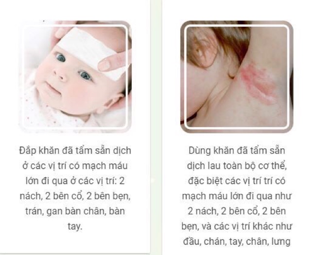 ♻️ Vừa lau toàn thân và kết hợp đắp vào các vị trí có mạch máu lớn: cổ, trán, nách, gan bàn tay, gan bàn chân….
