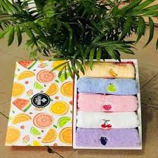 Giới thiệu HÔP 5 Khăn Mặt Cotton, Họa Tiết Thêu Hình Hoa Quả