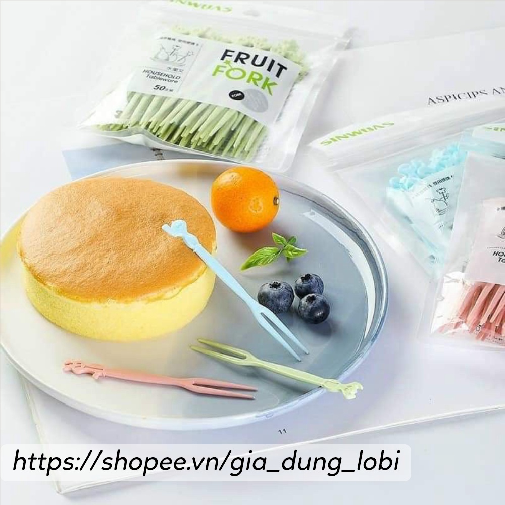 Hộp 50 chiếc dĩa cắm thức ăn hoa quả dễ thương dĩa nhựa xiên hoa quả chất liệu nhựa PS an toàn