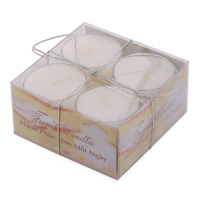 Hộp sản phẩm bao gồm 8 nến tealight thơm đế nhưa.