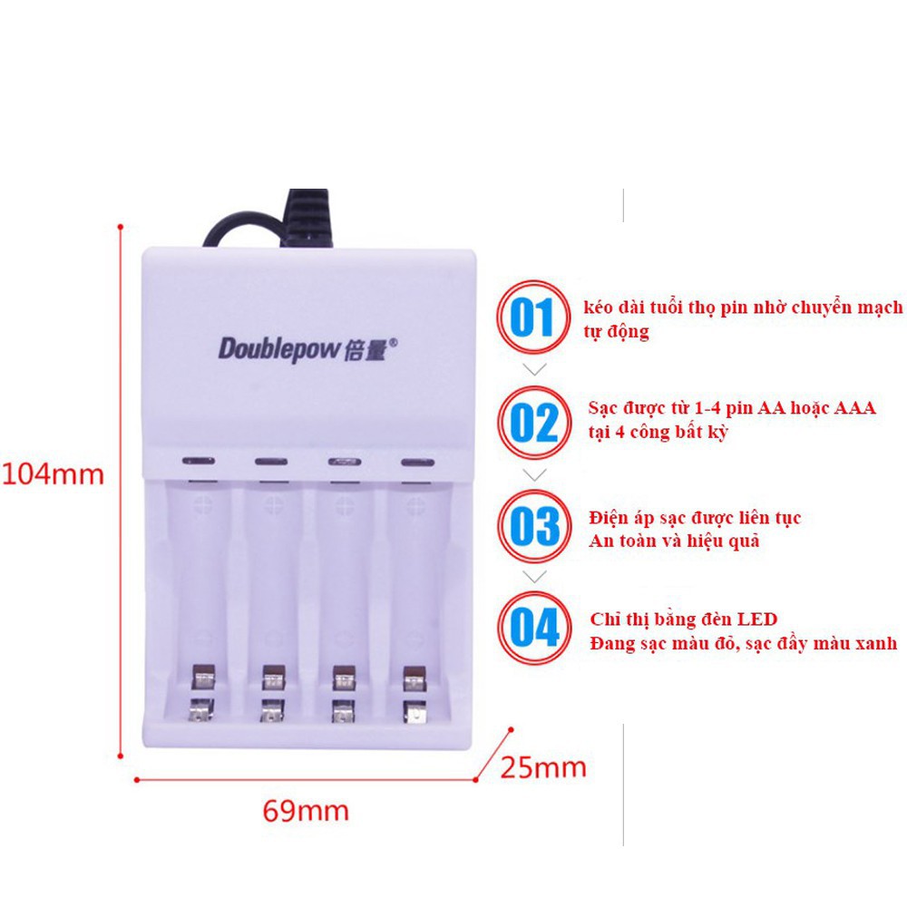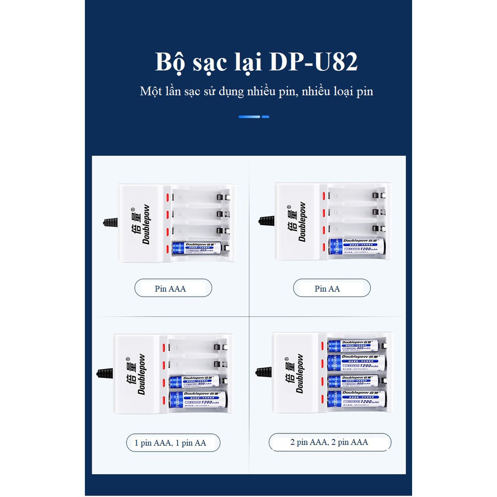 - Bộ sản phẩm bao gồm: Bộ sạc thông minh DoublePow DP-U82 và 4 pin Doublepow AA 800mAh.