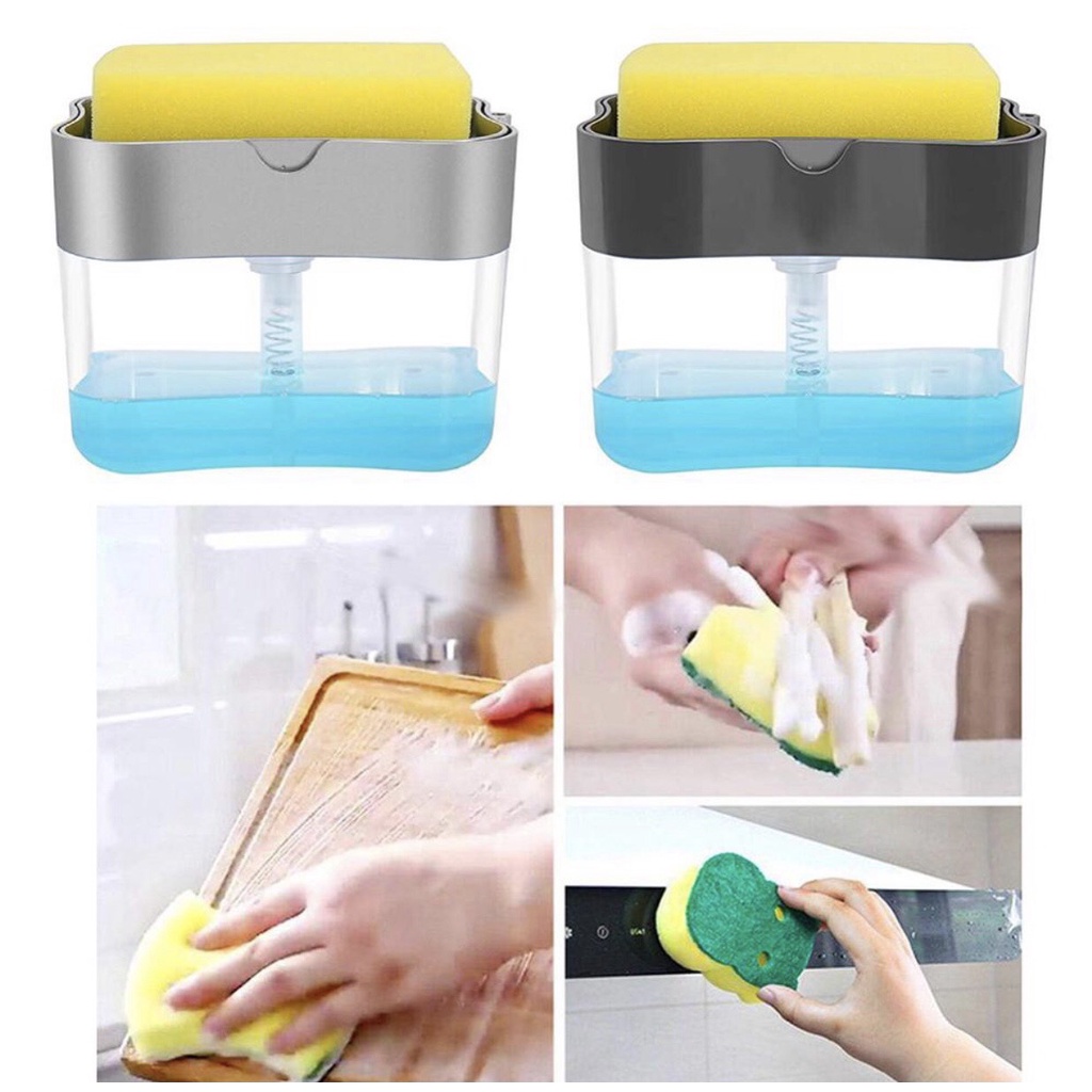 Hộp Ấn Lấy Xà Phòng, Dầu Rửa Bát Tiện Lợi - Tặng Kèm miếng Rửa