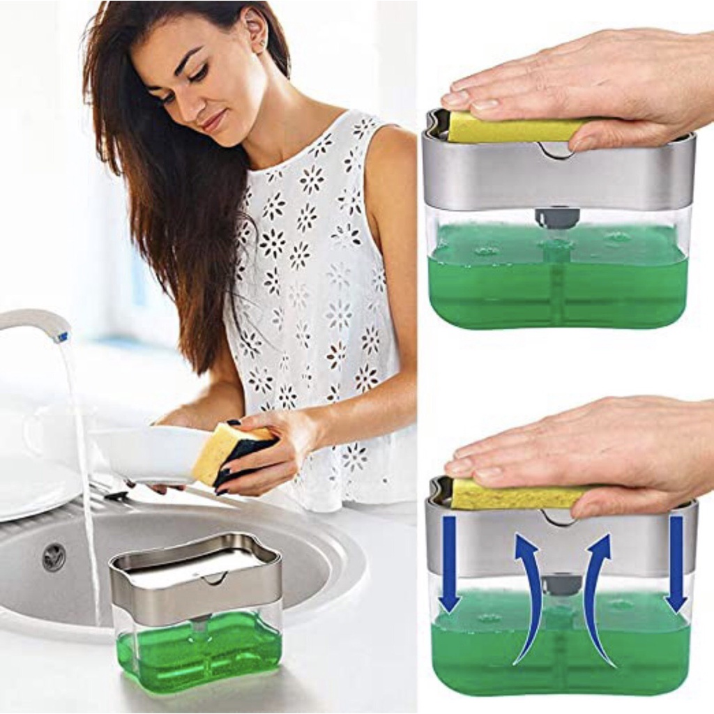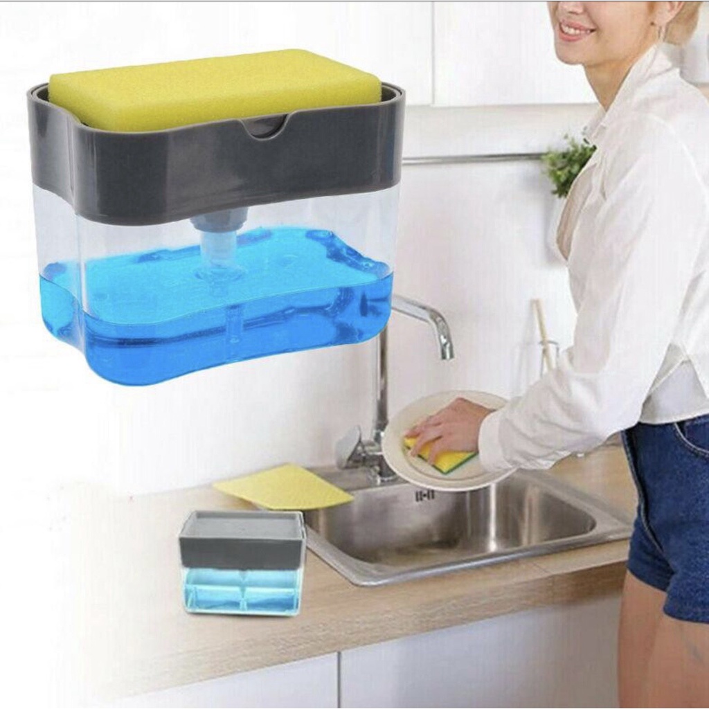 Giới thiệu Hộp Ấn Lấy Xà Phòng, Dầu Rửa Bát Tiện Lợi - Tặng Kèm miếng Rửa