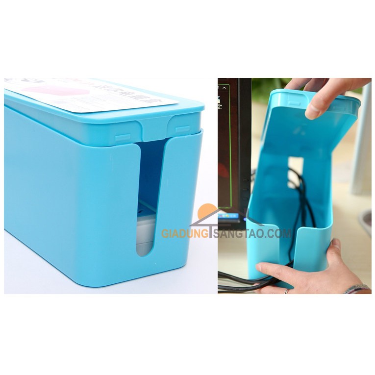 Hộp bảo vệ ổ cắm điện được thiết kế thông minh với 2 khe rãnh thoáng, bạn chỉ việc cho ổ cắm điện vào trong, luồn các dây cắm qua các khe theo độ dài vừa đủ để cắm các thiết bị điện, sau đó đậy nắp hộp.