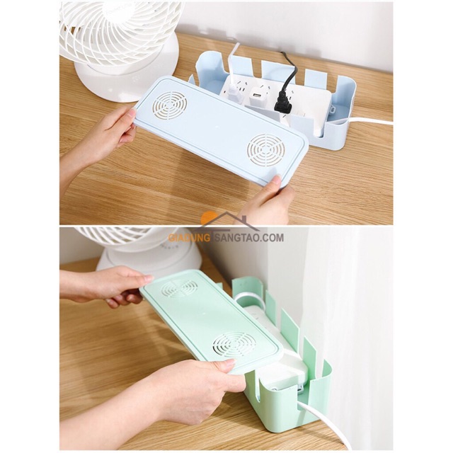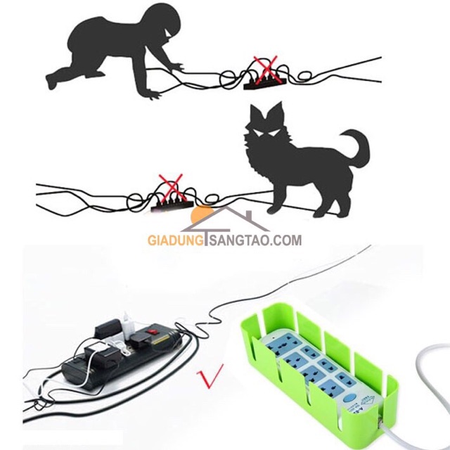 Hộp bảo vệ ổ cắm điện được thiết kế thông minh với các khe rãnh thoáng, bạn chỉ việc cho ổ cắm điện vào trong, luồn các dây cắm qua các khe theo độ dài vừa đủ để cắm các thiết bị điện, sau đó đậy nắp hộp.