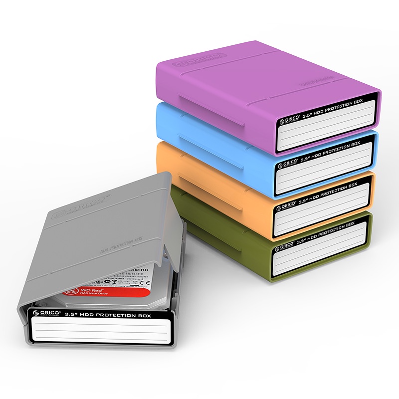 Mẫu sản phẩm ORICO PS35-5 | Kích thước 3.5 inch HDD / SSD | Màu Xanh lam / Xám / Cam / Tím / Xanh lục | Chất liệu nhựa PP | Nhãn Thiết kế Nhãn Đánh dấu Duy nhất+ Chống rơi, chống áp lực, chống va đập, chống ẩm và chống thấm nước.