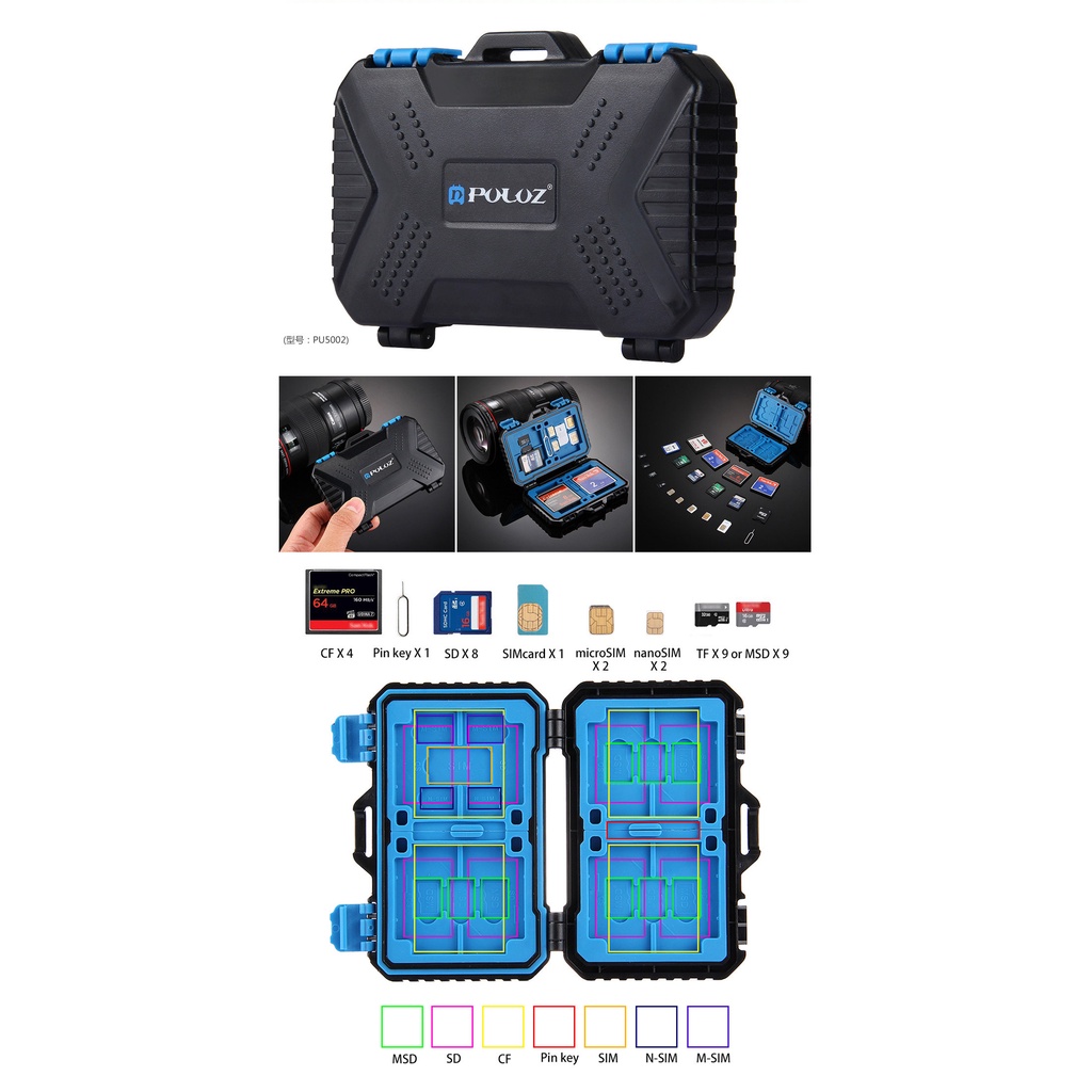 **Hộp đựng thẻ nhớ PULUZ 11 trong 1 cho thẻ 3SIM + 2XQD + 2CF + 2TF + 2SD