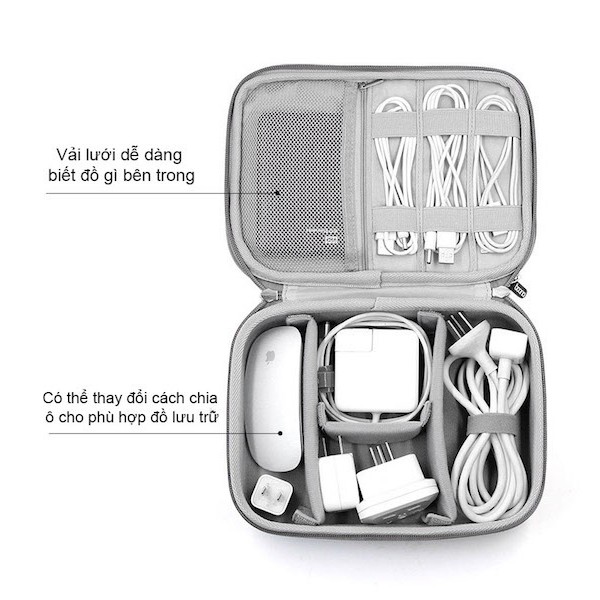 - Hộp Baona đựng phụ kiện công nghệ phom cứng size lớn có thể sử dụng đa năng với nhiều ngăn, đựng phụ kiện laptop, đựng bộ sạc macbook, máy tính bảng, dây cáp sạc, pin dự phòng, bộ sạc Macbook, ổ cứng, điện thoại, tai nghe, củ sạc ....Bằng cách thay đổi cách dựng các vách ngăn bạn có thể dễ dàng biến hóa cách bố trí đồ bên trong theo nhu cầu sử dụng.