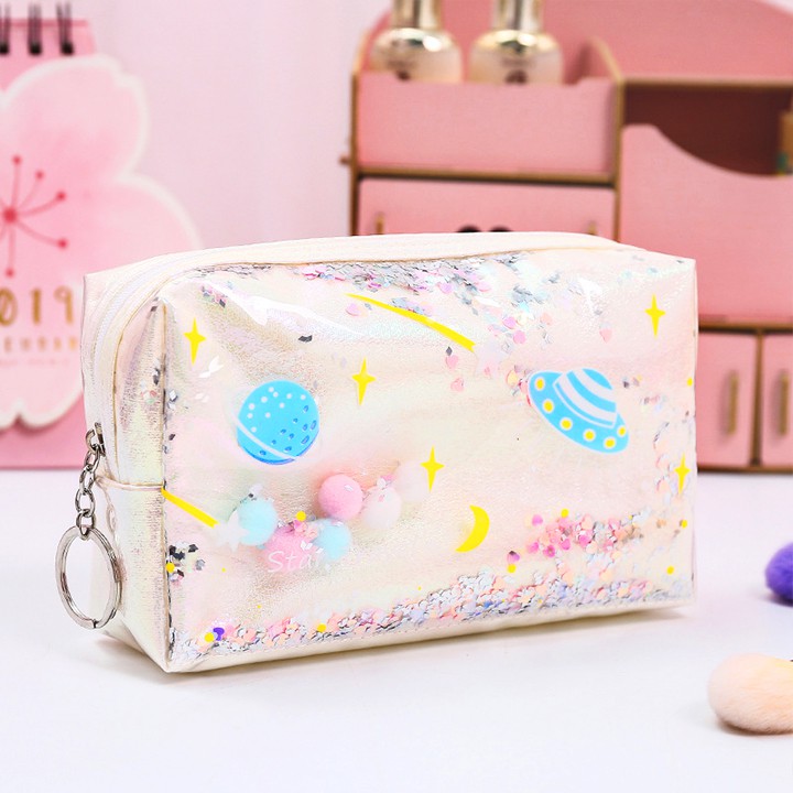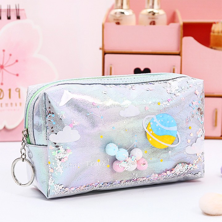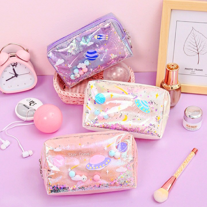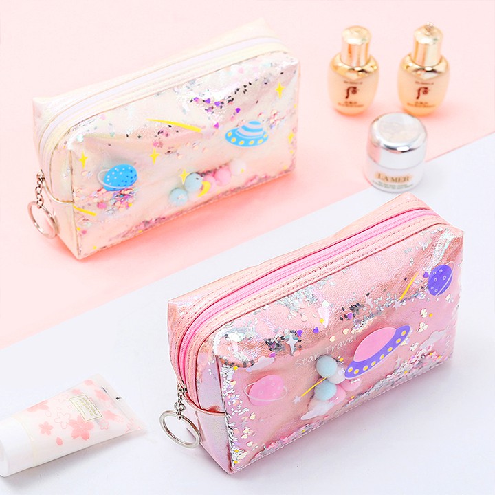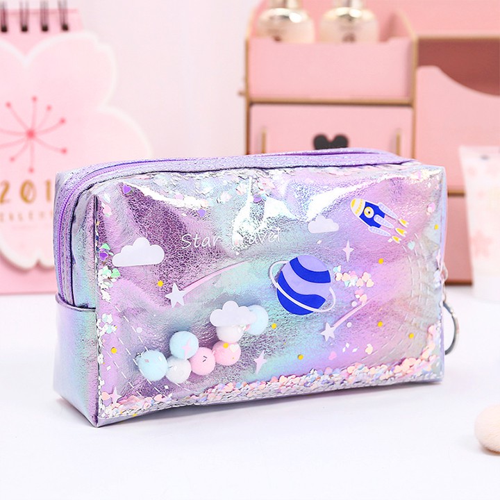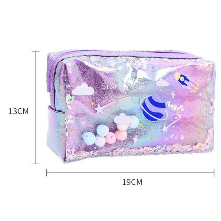 Hộp bút siêu rộng hình vũ trụ chống thấm phối hạt sequin lấp lánh chuyển động họa tiết in laser sắc nét cực tiện lợi, các họa tiết chuyển động làm cho hộp bút trở nên sinh động, bé thêm hứng thúNgoài ra, với kích thước lớn của túi thì các mẹ và các bạn nữ có thể tha hồ đựng mỹ phẩm, trang sức, đồ trang điểm….vô cùng tiện lợi nhé!