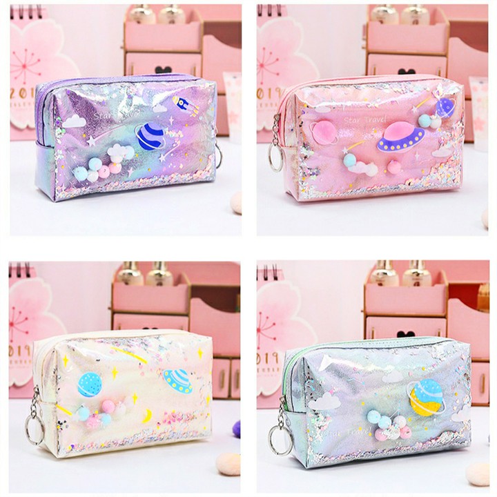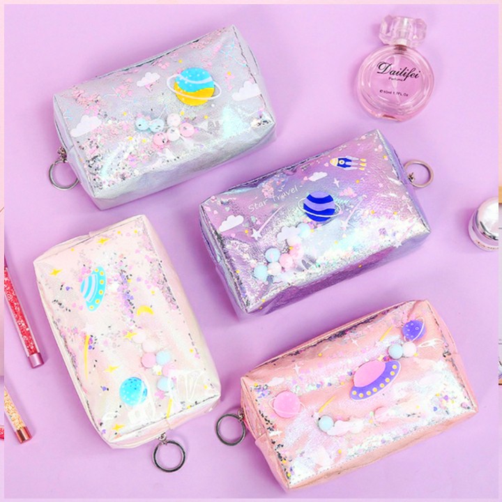 Hộp bút siêu rộng hình vũ trụ chống thấm phối hạt sequin lấp lánh chuyển động họa tiết in laser sắc nét BBShine – H045
