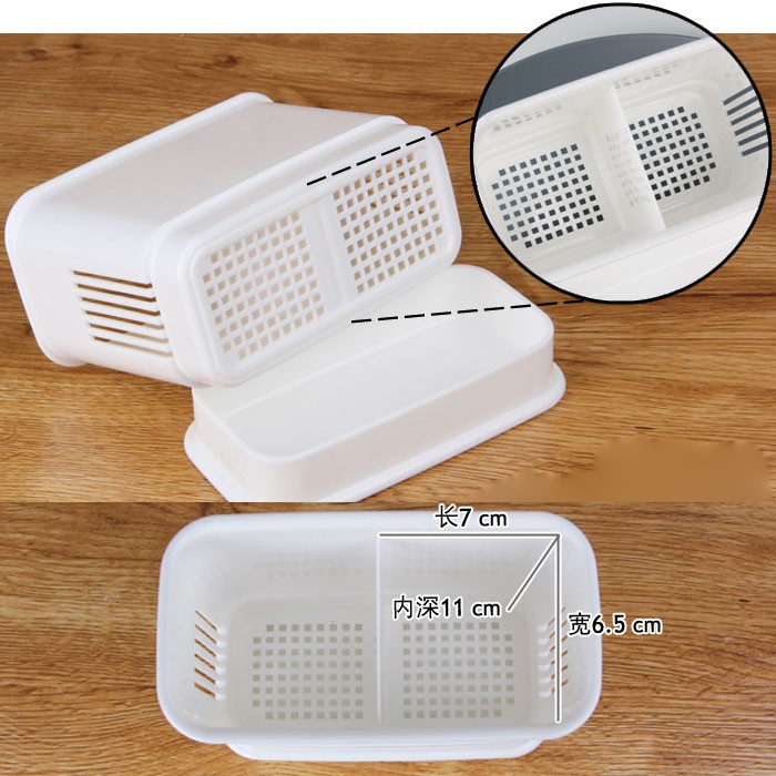 Hộp đựng có các khe dọc giúp dụng cụ nhanh chóng khô ráo, hạn chế vi khuẩn phát sinh.