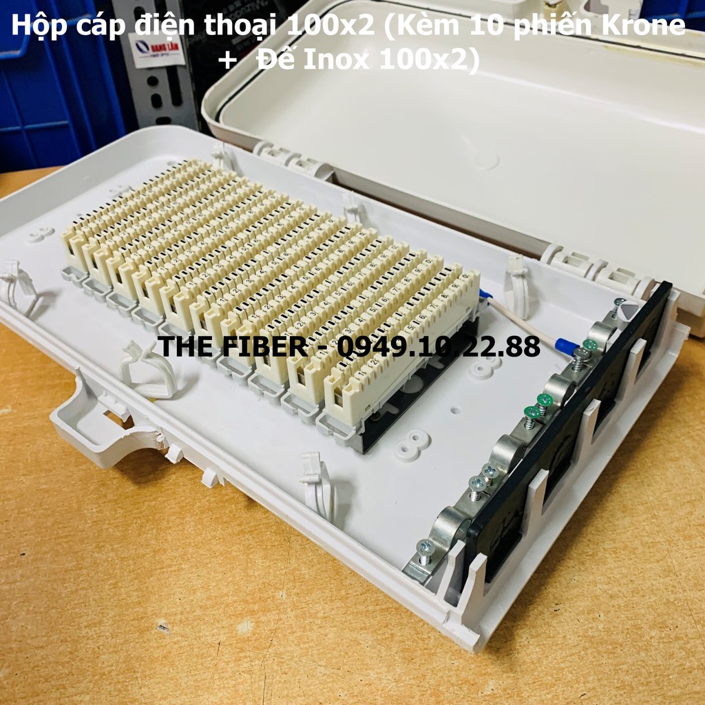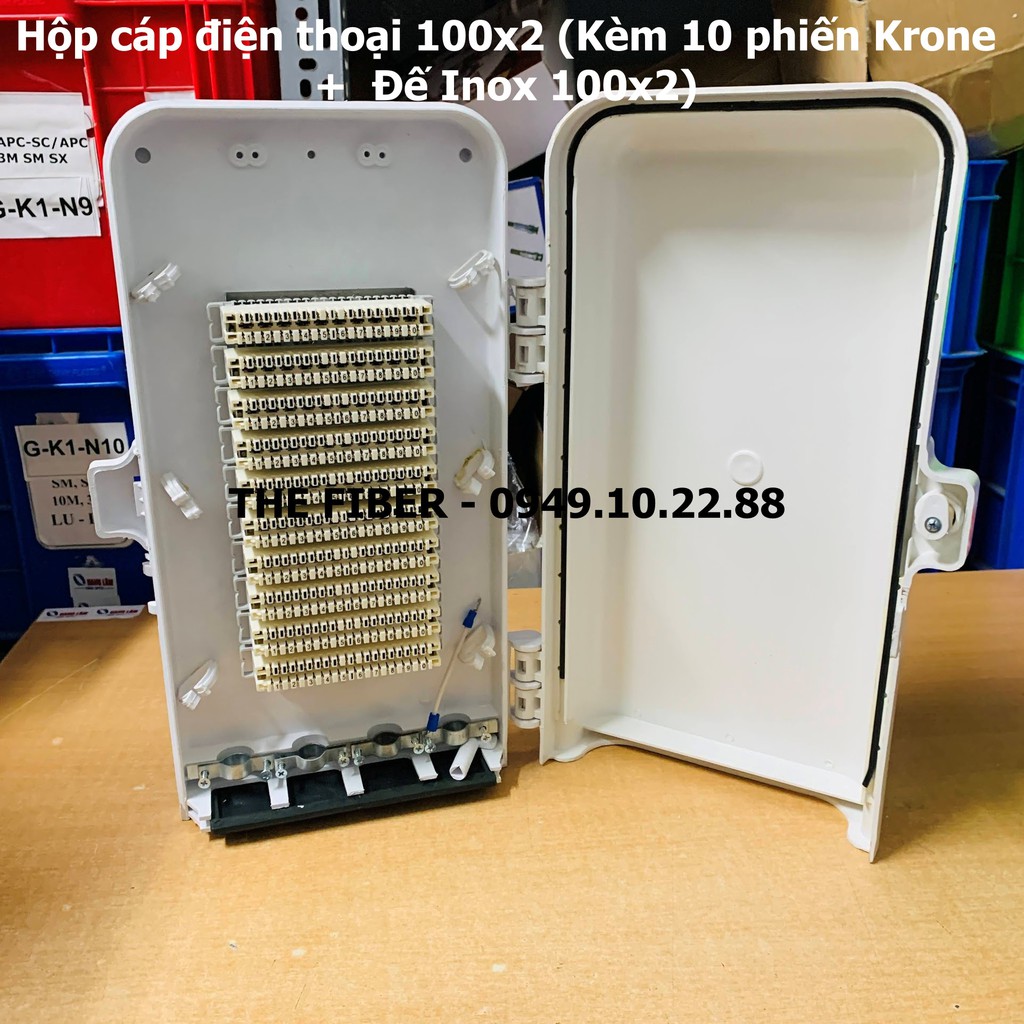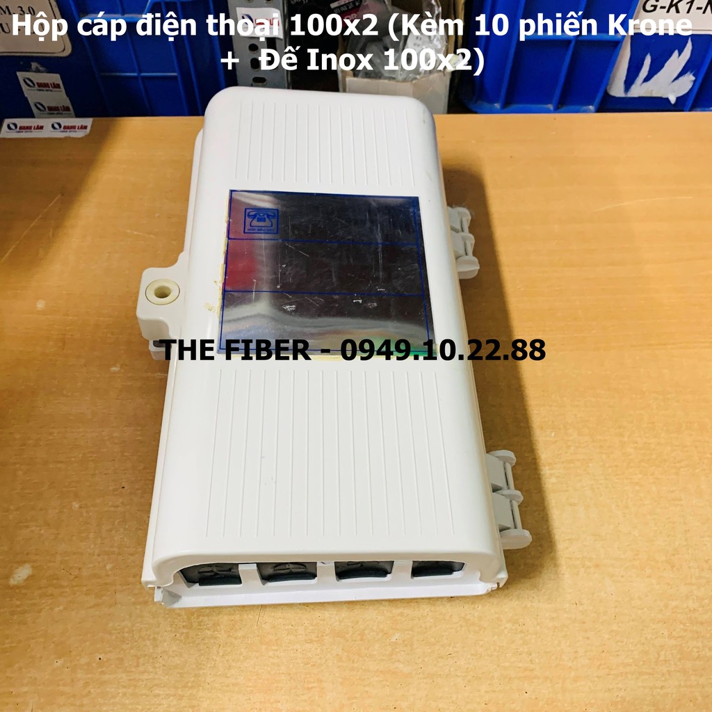 Hộp cáp điện thoại IDF 100x2 (Kèm 10 Phiến Krone 10x2 + Đế Inox 100x2), bao gồm:- Vỏ hợp nhựa 100x2, có thể treo tường, treo cột, làm bằng nhựa cứng, chịu va đập, chống thâm nước
