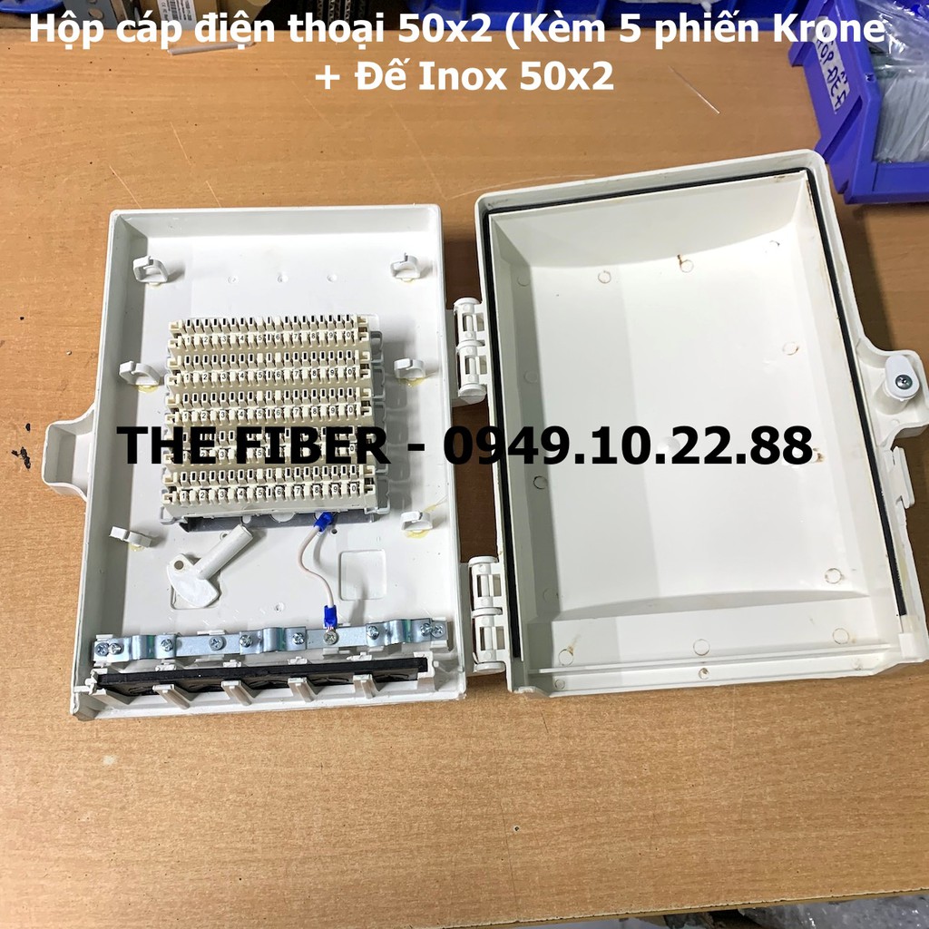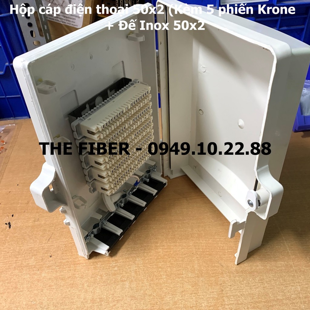 Hộp cáp điện thoại IDF 50x2 (Kèm 05 Phiến Krone 10x2 + Đế Inox 50x2), bao gồm:- Vỏ hợp nhựa 50x2, có thể treo tường, treo cột, làm bằng nhựa cứng, chịu va đập, chống thâm nước