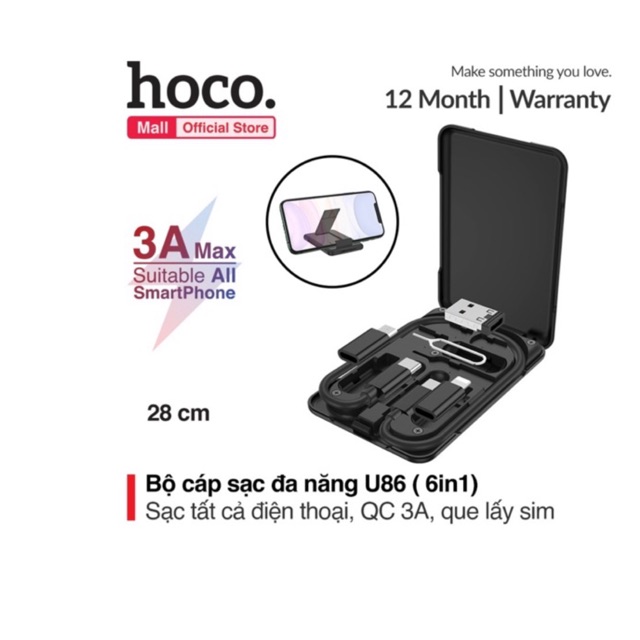 Điện Thoại & Phụ Kiện > Phụ kiện > Cáp, sạc & bộ chuyển đổi > Đế sạc đứng || Hộp cáp sạc đa năng 6 món Hoco U86 thiết kế của hộp có thể làm giá đỡ điện thoại để bànCòn hàng