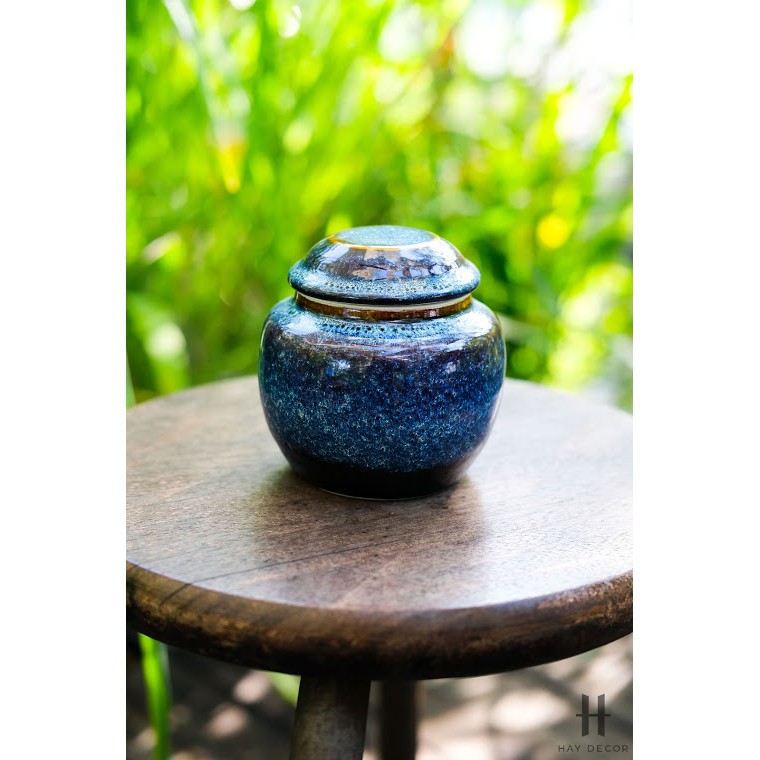 Hộp chè nhỏ - men Biển xanh hỏa biến đẳng cấp - sản xuất tại xưởng gốm sứ Gia Oanh Authentic Bat trang
