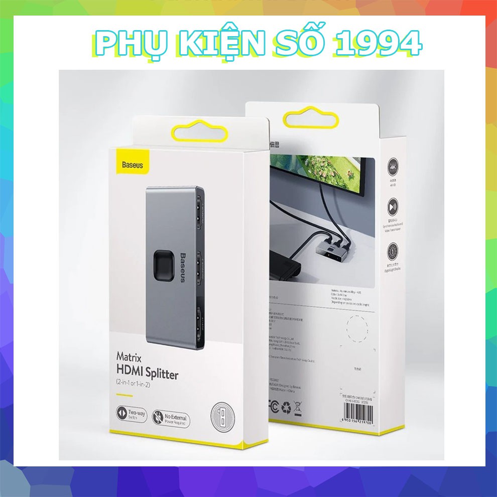 - Baseus Matrix HDMI Splitter là một thiết bị chia kết nối HDMI 2 chiều, chúng ta có thể xuất hình ảnh từ 1 thiết bị sang 2 màn hình hoặc từ 2 thiết bị sang 1 màn hình. Với Baseus Matrix HDMI Splitter bạn có thể dễ dàng lựa chọn nguồn phát hoặc màn hình hiển thị chỉ với 1 nút nhấn .