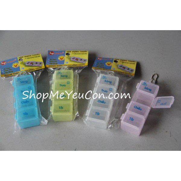Hộp chia thuốc rất nhỏ gọn, xin xắn có móc treo tiện dụng. Bạn có thể gắn vào chùm chìa khóa hay điện thoại để mang theo mọi nơi và dễ dàng tìm kiếm khi cần.
