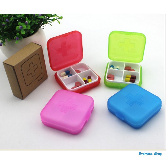 -Hộp đựng thuốc với 4 ngăn chia thành 4 ô tương ứng với sáng, trưa, chiều tối để bạn chia thuốc trong 1 ngày một cách khoa học, rất tiện dụng.