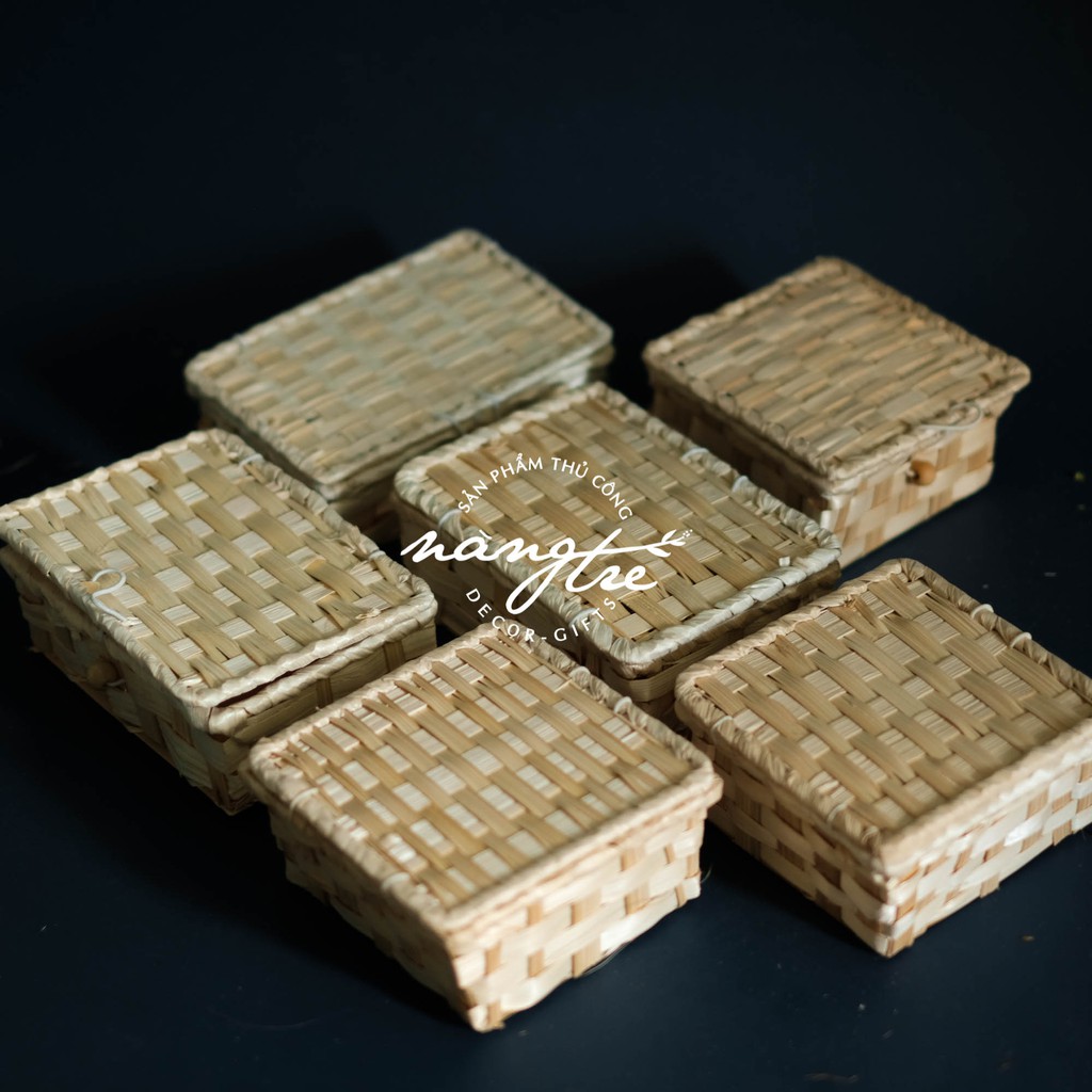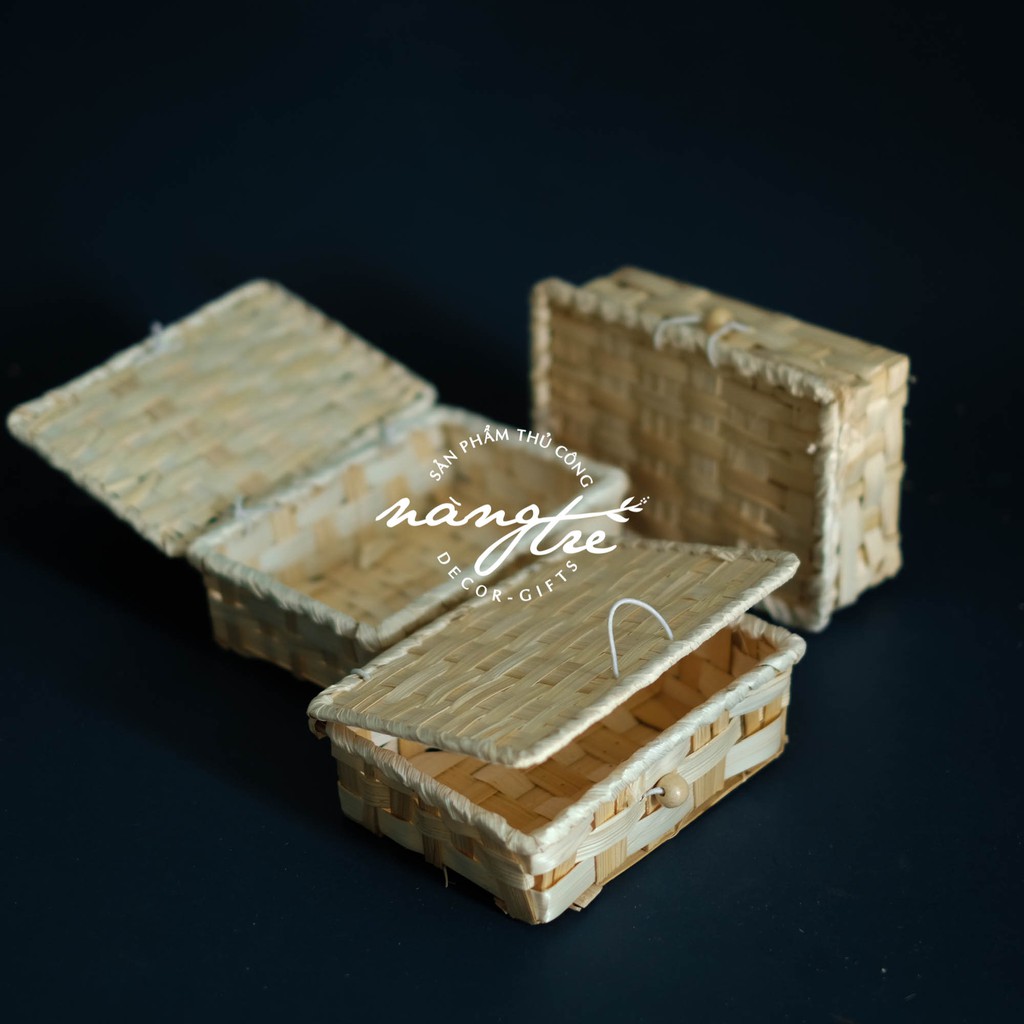 Hộp chữ nhật mini tre đan - Trang trí docer