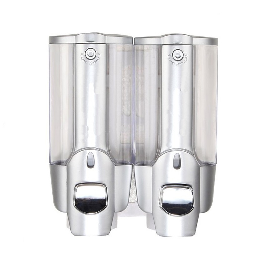Hộp chứa nước rửa tay, sữa tắm, dầu gội gắn tường loại đôi, màu trắng bạc
