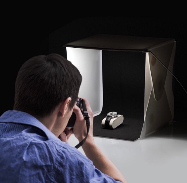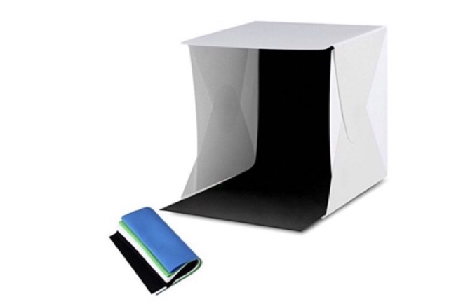 Cameras & Flycam > Phụ kiện máy ảnh > Thiết bị ánh sáng và phòng chụp || Hộp chụp ảnh (loại 1) có đèn kèm 2 tấm nền size 22.6cm x23cm x24cmCòn hàng