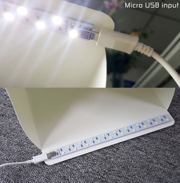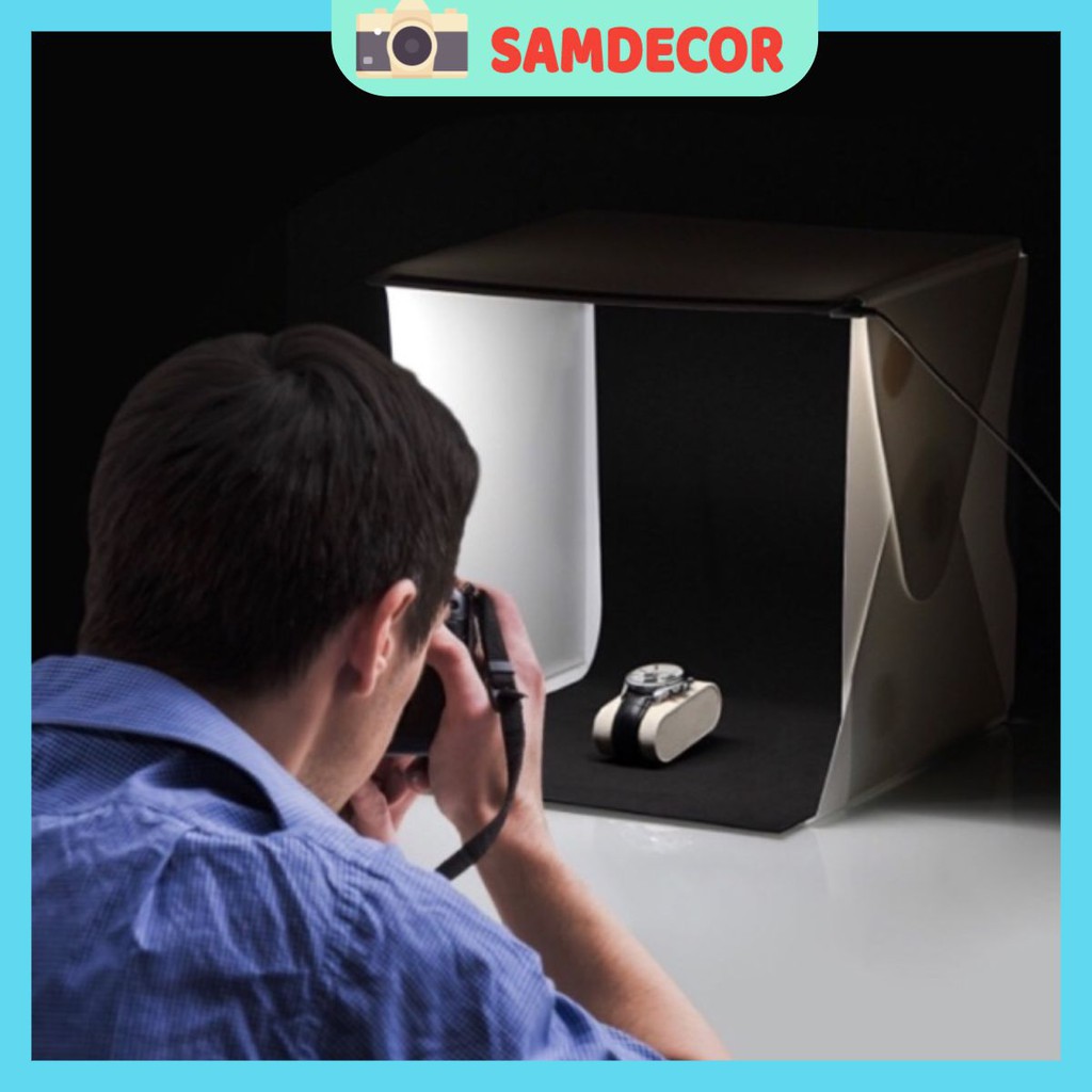 Hộp chụp ảnh có đèn + 1 dây cáp usb + 2 tấm nền đen trắng+ túi đựng.Kích thước 22,6cm x 23cm x 24cm