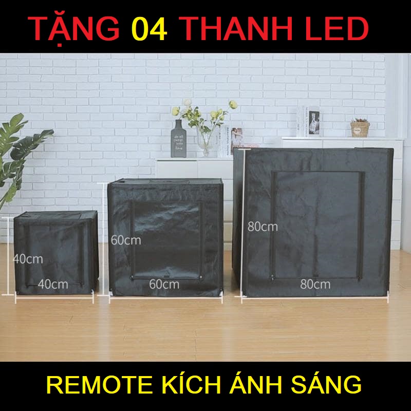 Hộp Chụp Ảnh Sản Phẩm 4 Đèn Led, 3 Chế Độ Màu + Remote Tăng Giảm Ánh Sáng