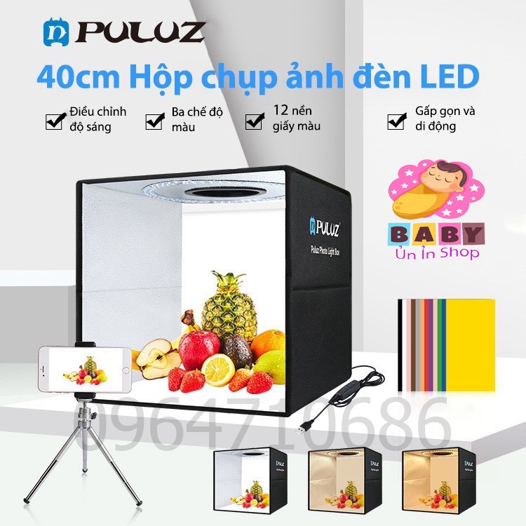 HỘP CHỤP ẢNH SẢN PHẨM PULUZ SZ 40*40 MÀU ĐEN CÓ ĐÈN LED- BẢO HÀNH 3 THÁNG