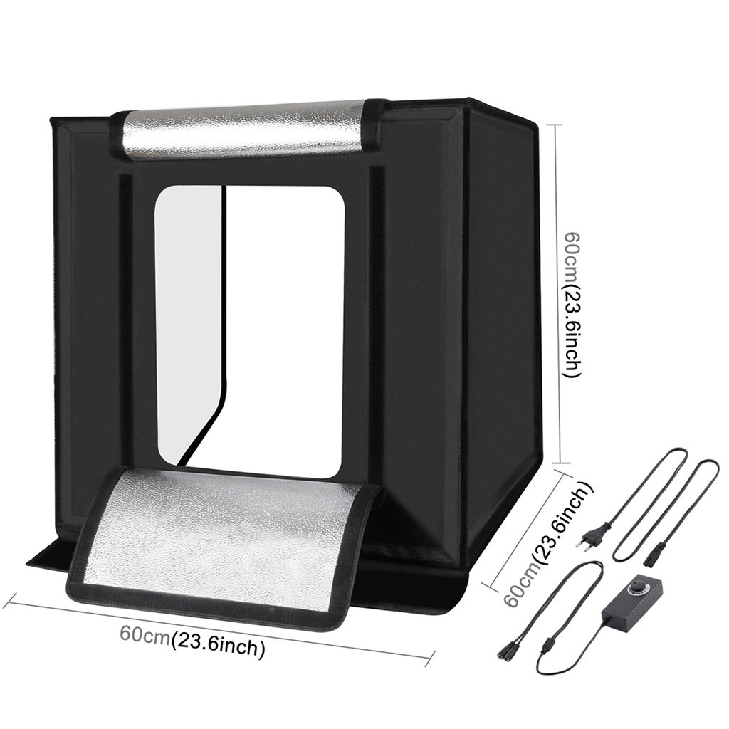 Hộp chụp sản phẩm chuyên nghiệp 60x60cm PULUZ 2 Dãy Đèn LedHộp Chup Hình Ảnh Sản Phẩm Puluz Có Kèm Đèn Led - Tặng 6 Nền