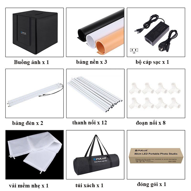 HỘP CHỤP HÌNH SẢN PHẨM PULUZ 80*80cm - TẶNG KÈM PHÔNG NỀN - BẢO HÀNH CHÍNH HÃNG