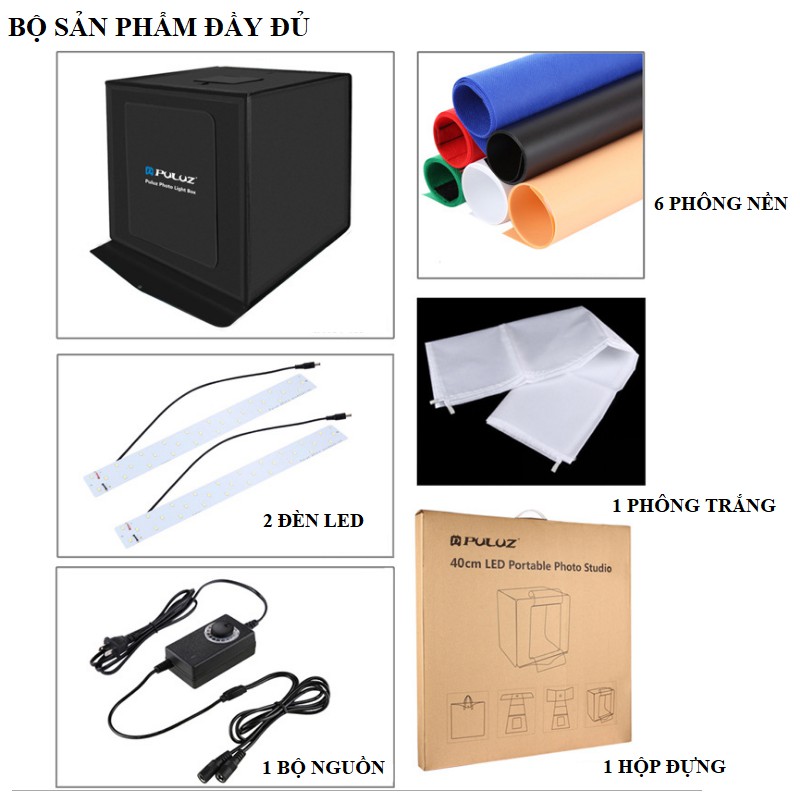 Hộp chụp sản phẩm 40x40cm cao cấp PULUZ có đèn led điều chỉnh được ánh sáng
