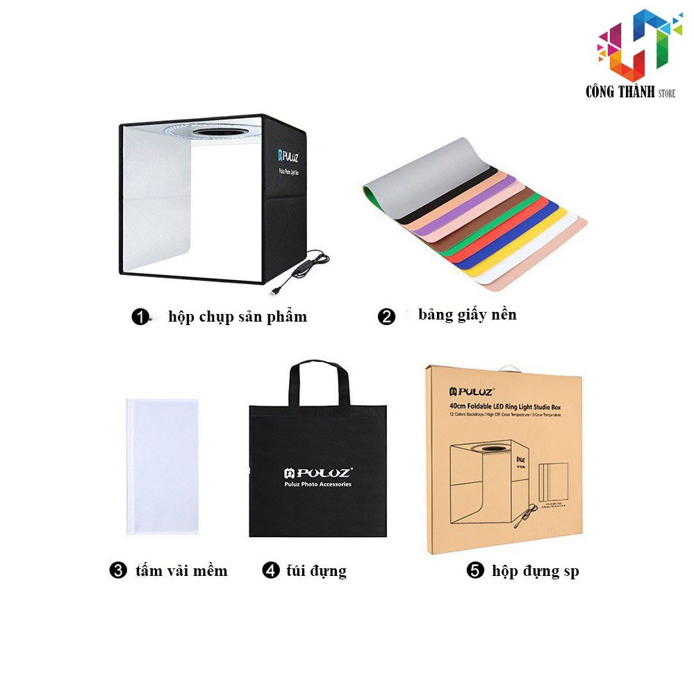 THÔNG TIN SẢN PHẨM:Tên sản phẩm: Hộp chụp sản phẩm chính hãng Puluz 60 x 60 cm