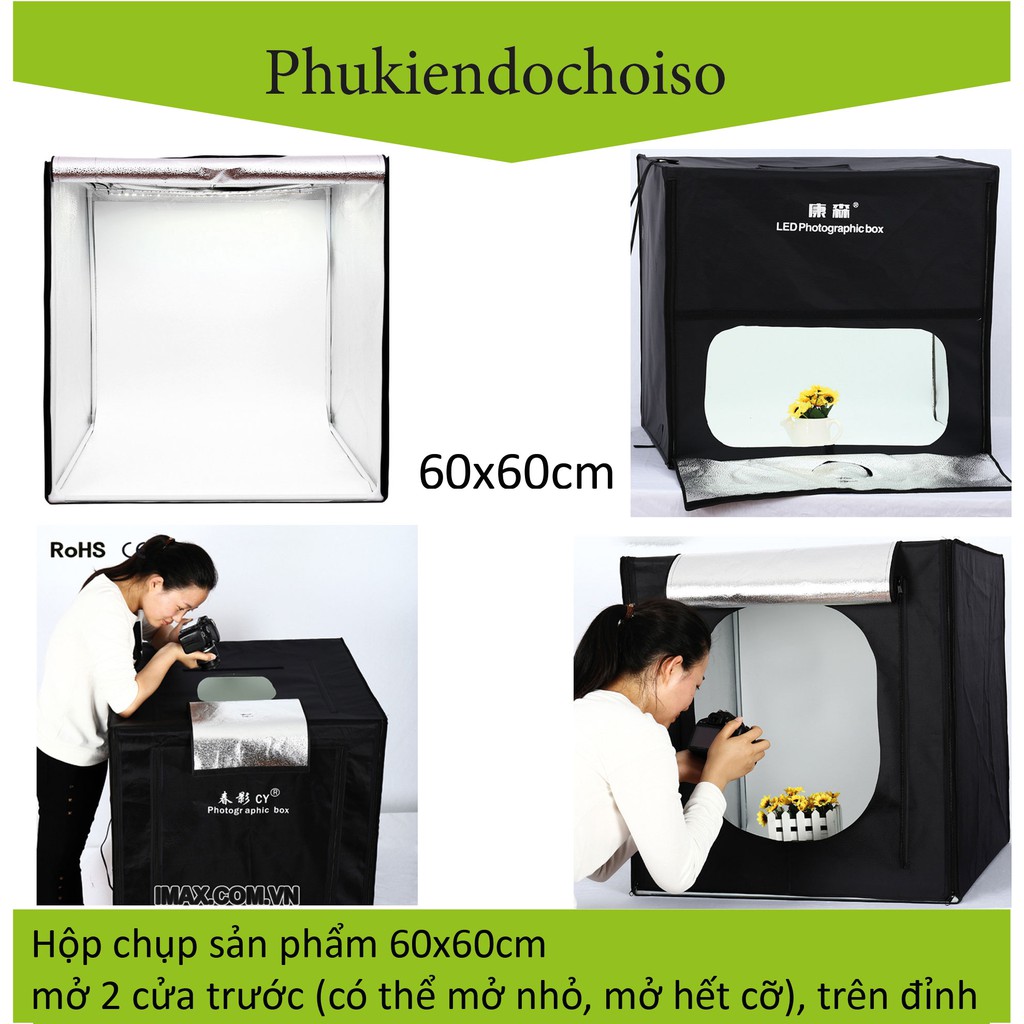 Cameras & Flycam > Phụ kiện máy ảnh > Thiết bị ánh sáng và phòng chụp || [Mã 44ELSALE2 giảm 7% đơn 300K] Hộp chụp sản phẩm Ciya CY-60, Có 2 đèn Led, 60x60cmCòn hàng