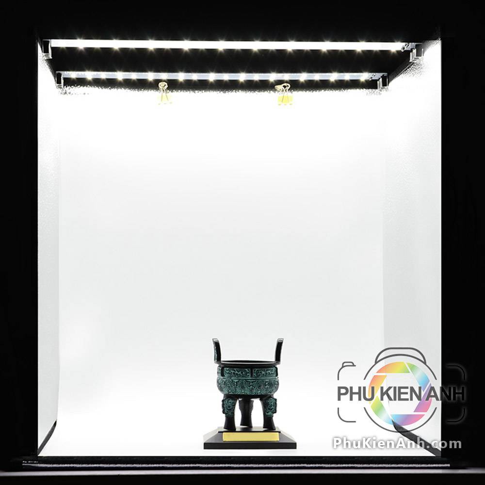 Sử dụng đèn led thế hệ mới siêu sáng, đi chung với bộ hộp chụp sản phẩm là hai thanh đèn led 60cm.